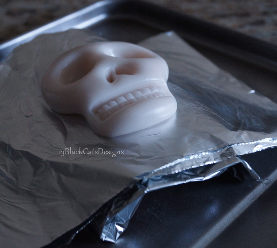 Condition your clay by kneading it until it is soft. I used a half a package for my skull. If you would like to have a skull closer to that of Pottery Barn then you can use less.